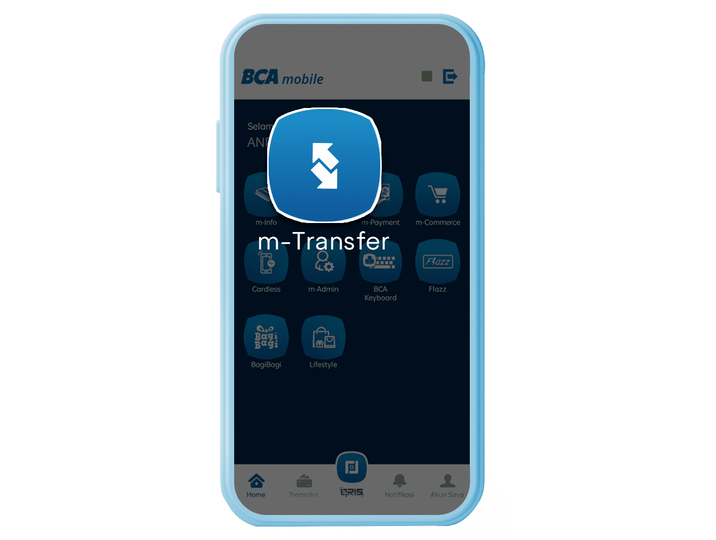1. Buka BCA mobile, pilih menu “m-Transfer”