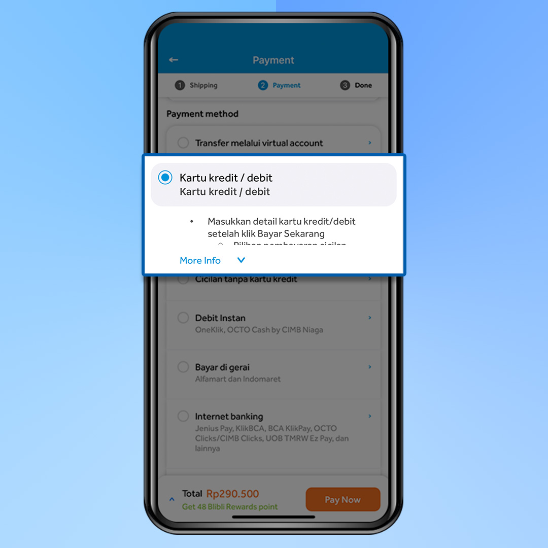Pilih “Kartu Kredit/Debit“ pada kolom pilihan Metode