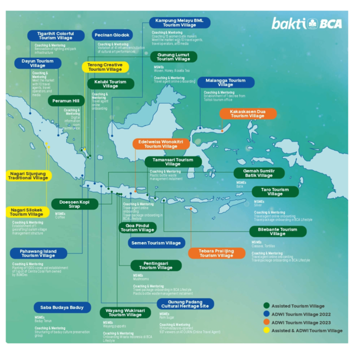 Sebanyak 13 penghargaan, baik pada tingkat Nasional maupun Global, berhasil diraih oleh sejumlah Desa Bakti BCA di sepanjang 2023. Desa Wisata Taro dan Bilebante menjadi bagian dari The Best Tourism Villages Upgrade Programme 2023 oleh United Nation World Tourism Organization (UNWTO). Selain itu, penghargaan kategori Community Based Tourism pada event ASEAN Tourism Forum juga diberikan kepada Desa Wisata Tamansari, Desa Wisata Pentingsari, dan Nagari Silokek.