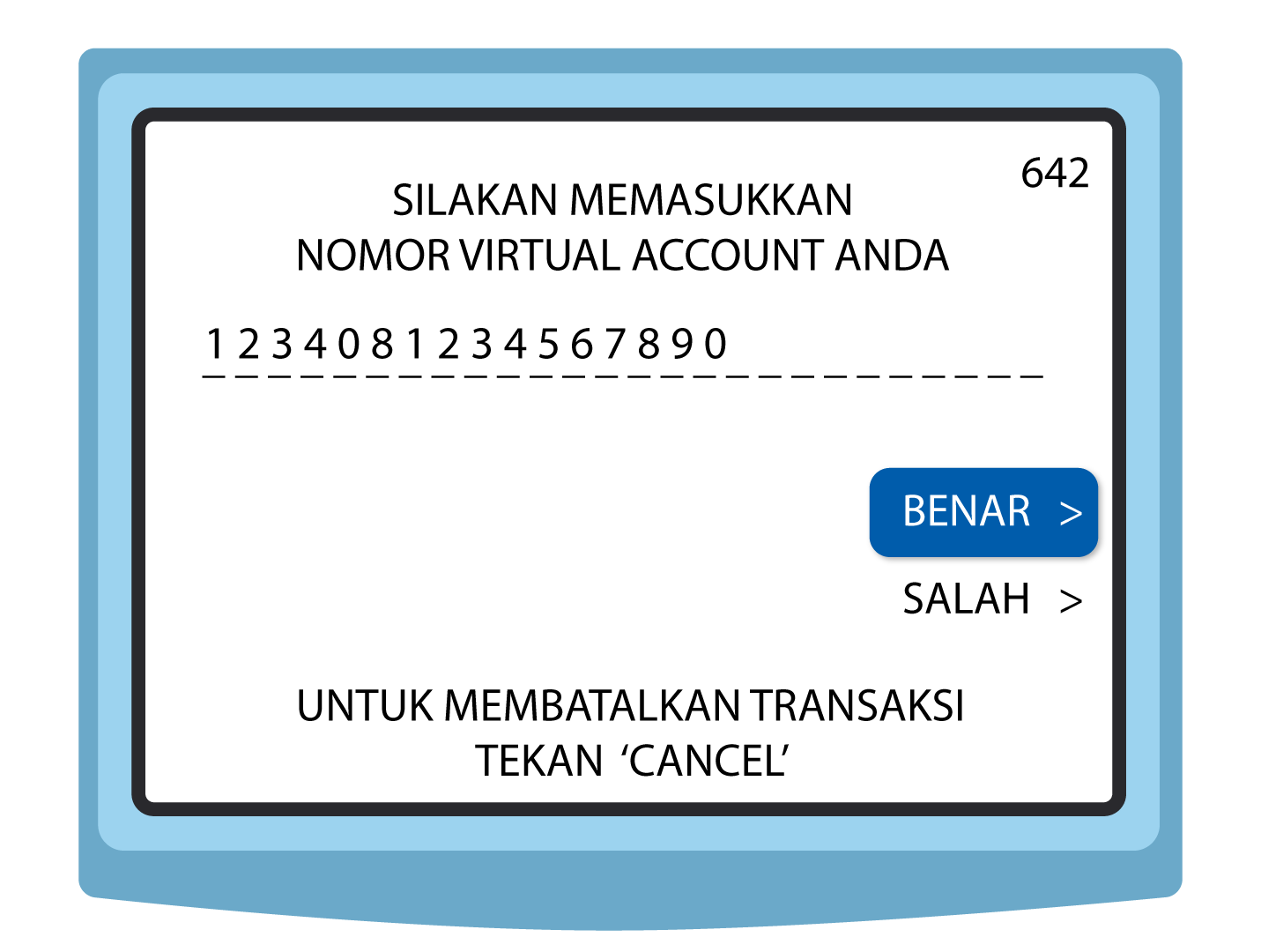 6. Masukkan nomor BCA Virtual Account dan klik “Benar”