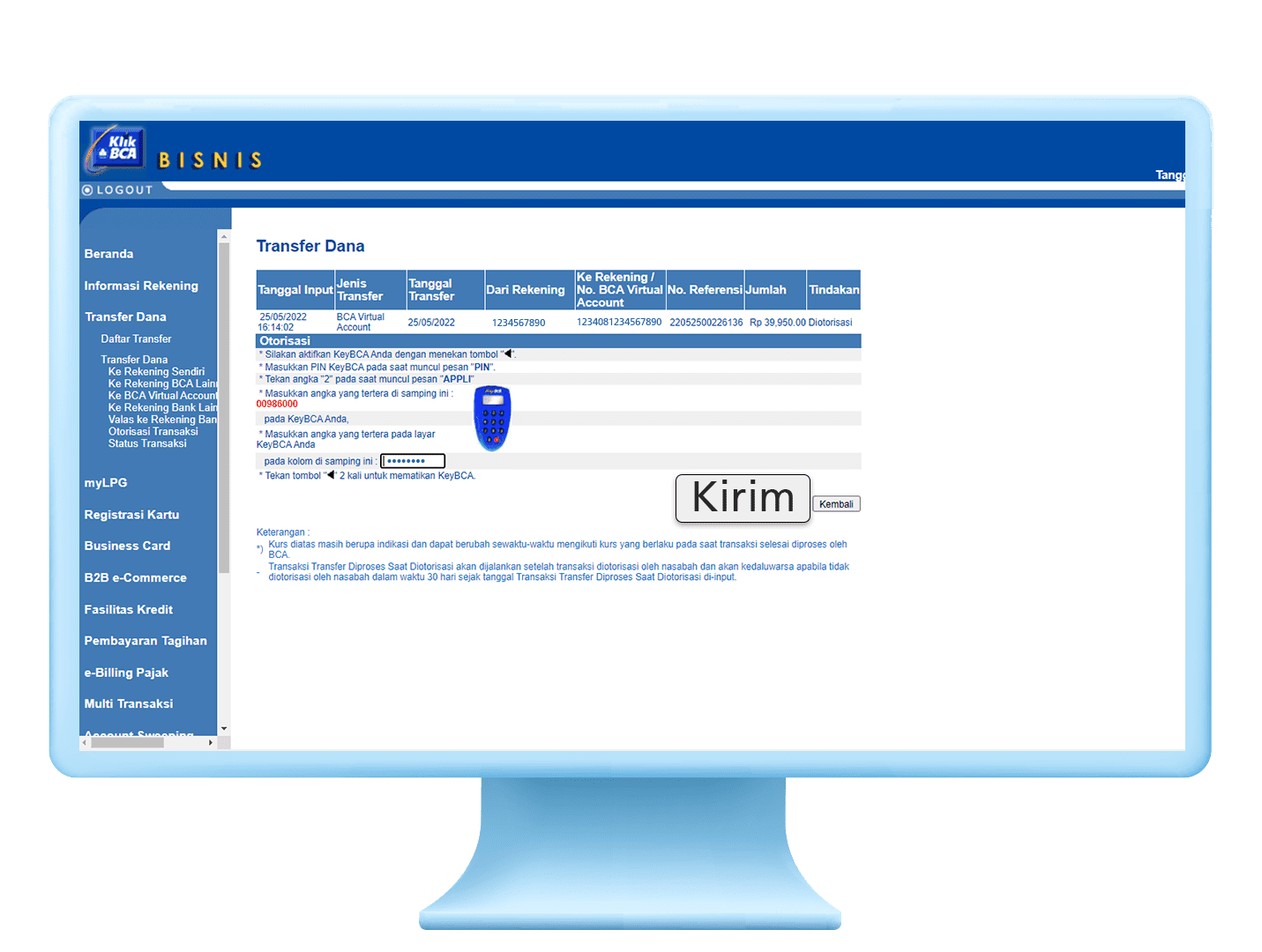 6. Masukkan respon KeyBCA dan klik “Kirim”