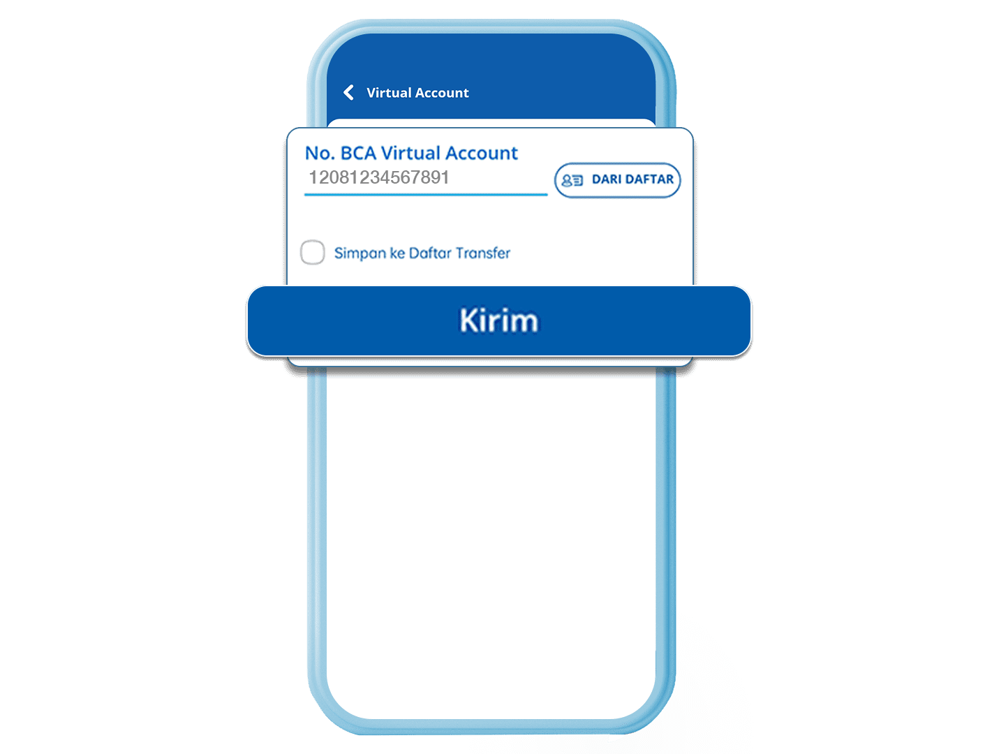 3. Masukkan nomor BCA Virtual Account dan klik “Kirim”