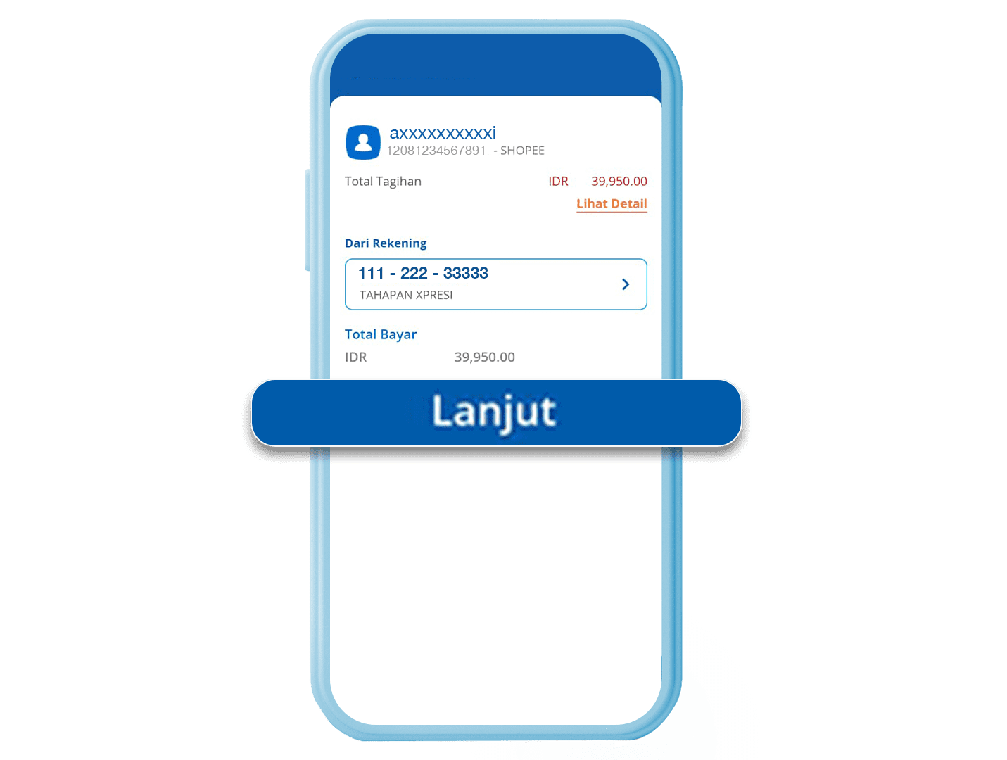 5. Konfirmasi detail transaksi dan klik “Lanjut”